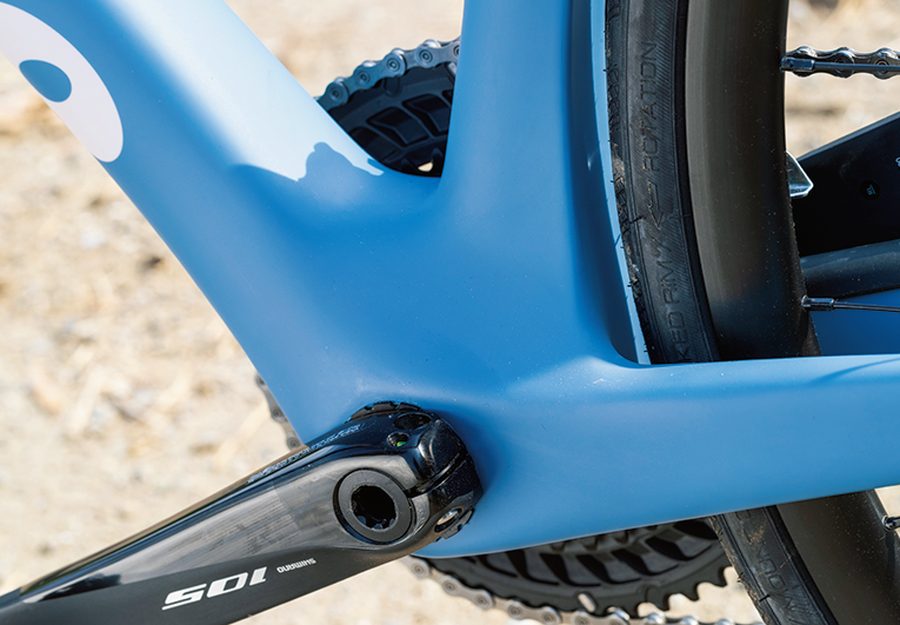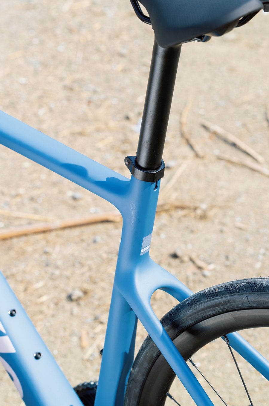 34mmまで対応するタイヤクリアランスを確保。フェンダー併用時は31mmまでのタイヤに対応する。細身のシートステーはトップチューブとの集合部より下部にオフセットして接合され、シートポストのフレックス性も引き出すことで振動吸収性を高めている.