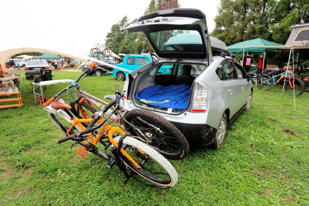 こちらはプリウスを使ったキャンピングカー。フルフラットになるので2人で寝ることができる。ちなみにこのプリウス車高をアップし、SUV化しているというから驚きだ。
