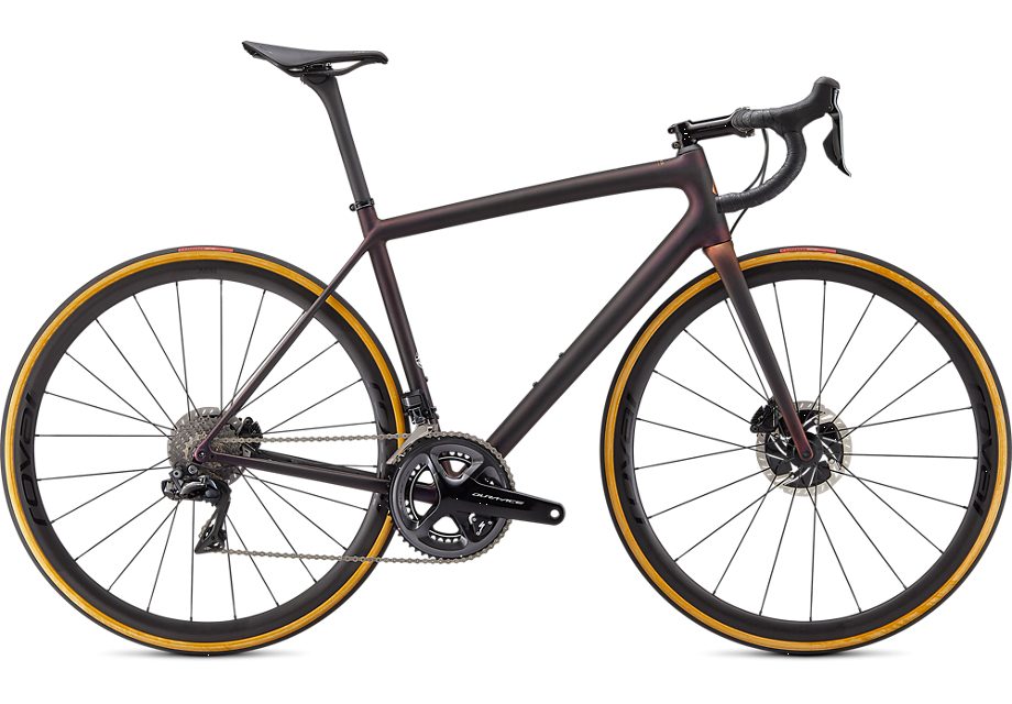 スペシャライズドは新たなプラットフォームを誕生させるたびに、Founderʼs Editionを用意する。スペシャライズド最軽量のこのバイクは、世界限定300台。フレームと同じ美しい限定ペイントテーマがいくつかのパーツにも施される。S-Works Aethosは最軽量のShimano Di2 コンポーネントやRoval Alpinist SLの バー/ステムコンボのコックピット(市販バイク初採用)を搭載し、セラミックスピード製ボトムブラケットとプーリーにアップグレードしている。