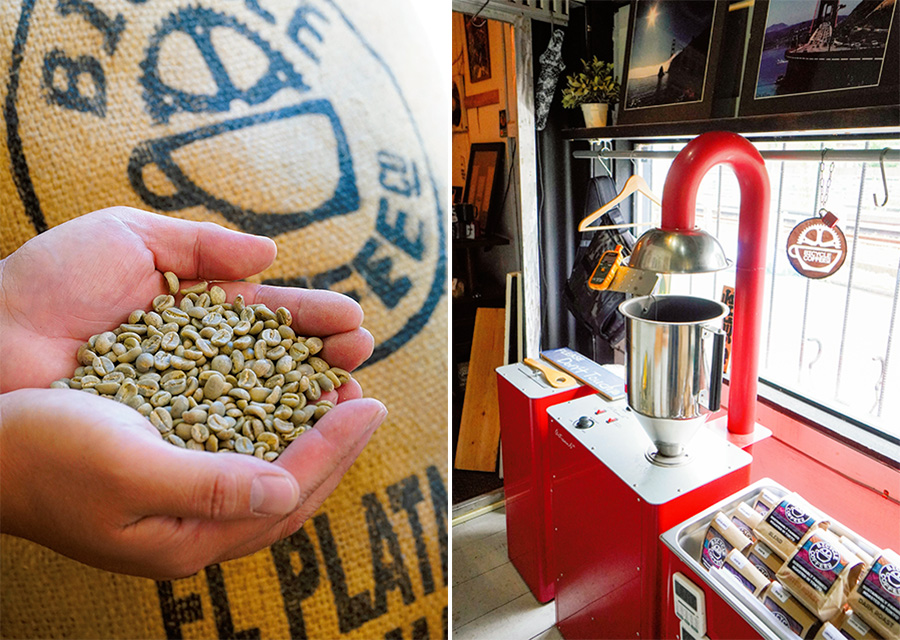 サンフランシスコ近郊のオークランドに本店を置き、東京、そしてロサンゼルスにも店舗をもつバイシクルコーヒー。専用リヤカーを自転車で引いて、豆をオフィスなどに配達するスタイルは、日本もアメリカも共通だ。商売はこのオーガニックコーヒー豆の販売がメインだが、カフェもコーヒー豆のプロらしさを感じさせる。