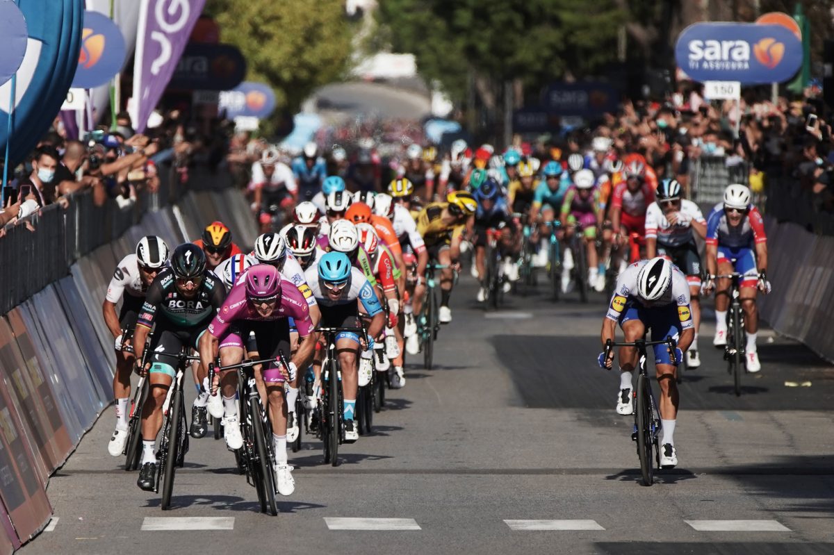 残り3kmを切ったところでユンボ・ヴィズマのトレインが集団の先頭に立ち、残り1kmでグルパマFDJのトレインが前に出た。マリアチクラミーノを着るデマールは2人のチームメートに引かれて残り700mを通過。残り500mでスプリントを始めたアルバロホセ・ホッジ(ドゥクーニンク・クイックステップ)が一時先頭に立つも、デマールは右側から一気に抜き去り、背後にピッタリと付いたサガンも振り切る圧巻のスプリントで2日連続のステージ勝利を挙げた。デマールは今大会早くも3勝目だ。