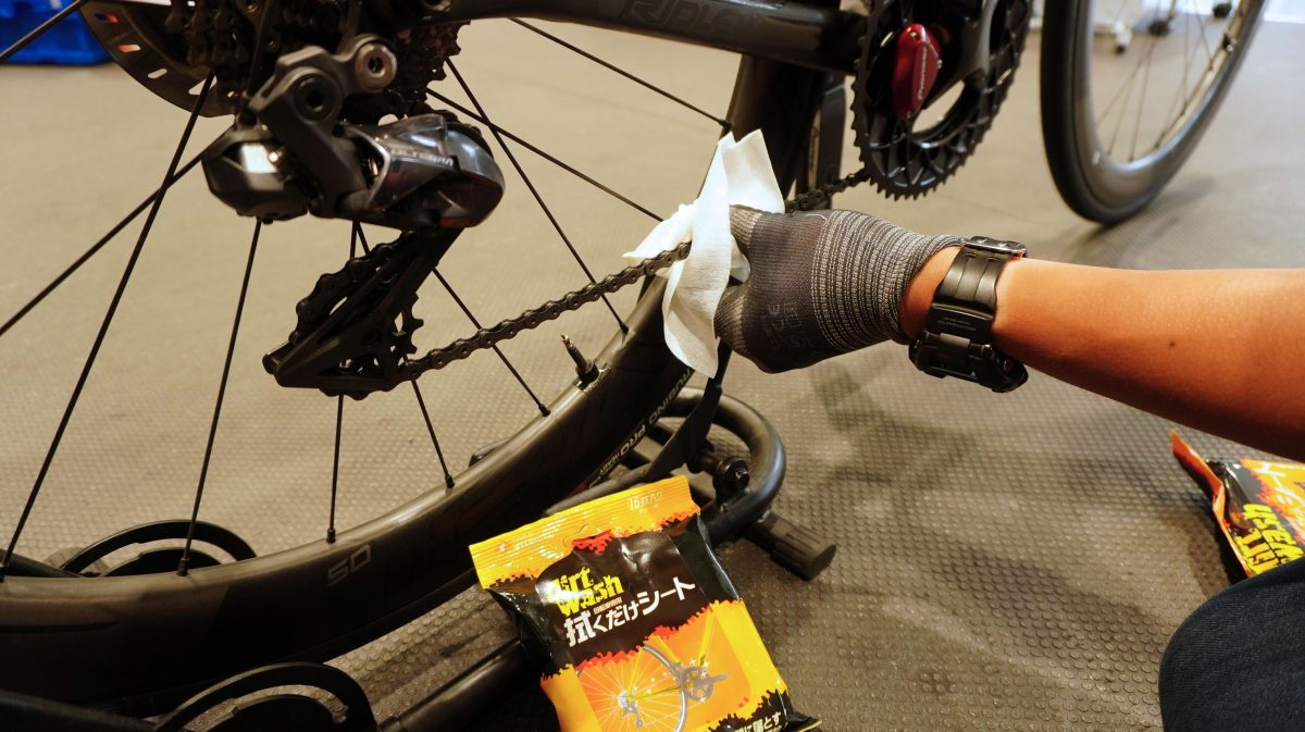 掃除をお手軽に使い捨てタイプのお掃除クロス。フレーム用とチェーン用があるので使い分けよう。