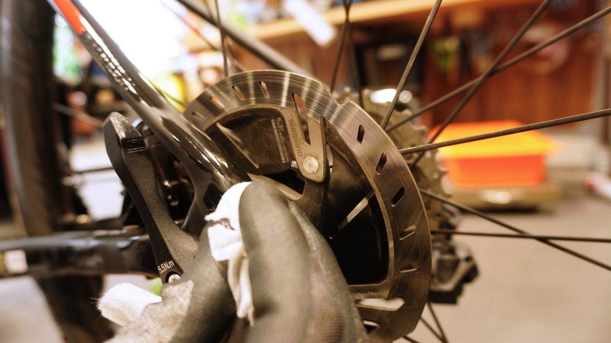 さらにディスクブレーキ車だと汚れが目立つのブレーキまわり。ここでもウェルドタイトの拭くだけシートを使えば、ディスクローター&キャリパー付近の粉状の汚れを簡単に落とせる。