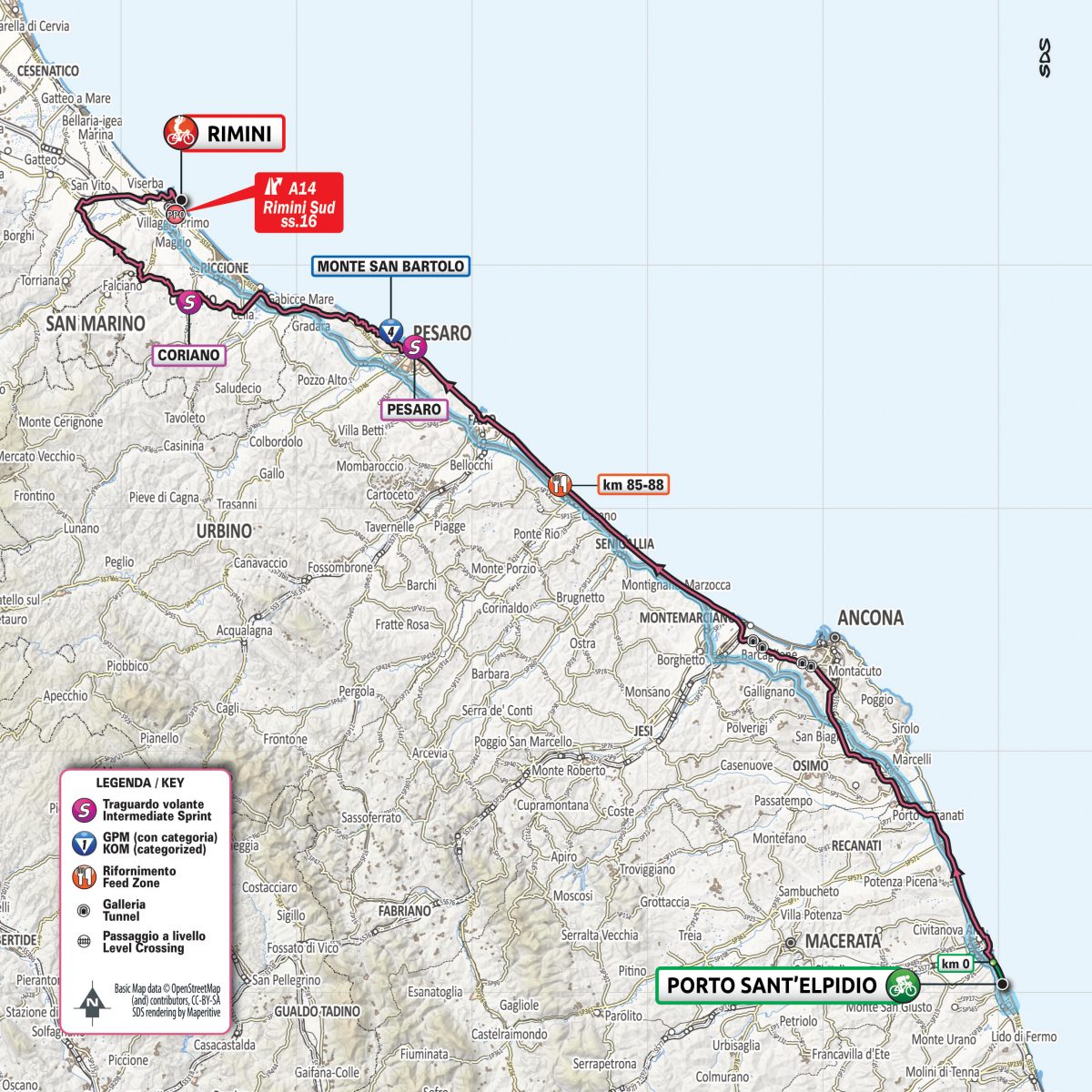 第14ステージは、イタリア北東部のブドウ畑が広がる丘陵地帯を駆け抜ける今大会2度目の個人タイムトライアル。7km地点に4級山岳ムーロ・ディ・カ・デル・ポッジオ(距離1.1km、平均勾配12.3%)があり、終盤にも丘をひとつ越えて下り、最後も勾配5%の上りを越えてフィニッシュとなる。距離は34.1kmだが、主催者が示す難度は☆4つと山岳ステージ並みだ。