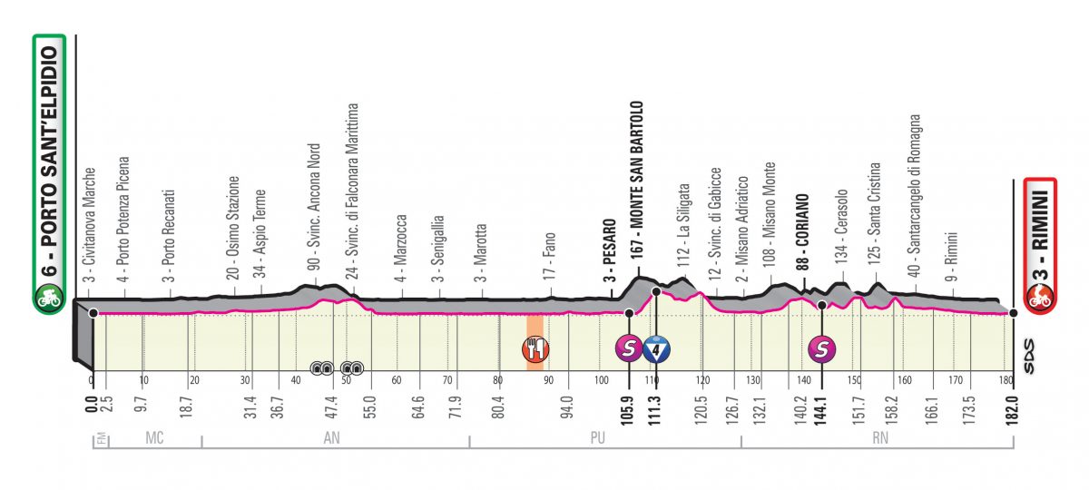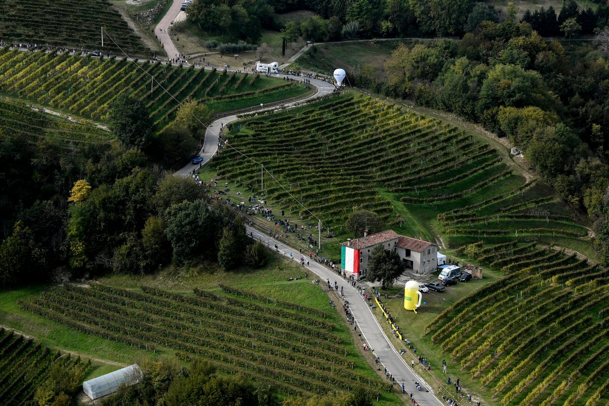 第14ステージは、イタリア北東部のブドウ畑が広がる丘陵地帯を駆け抜ける今大会2度目の個人タイムトライアル。7km地点に4級山岳ムーロ・ディ・カ・デル・ポッジオ(距離1.1km、平均勾配12.3%)があり、終盤にも丘をひとつ越えて下り、最後も勾配5%の上りを越えてフィニッシュとなる。距離は34.1kmだが、主催者が示す難度は☆4つと山岳ステージ並みだ。
