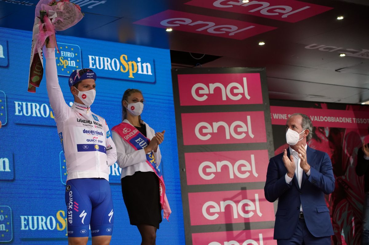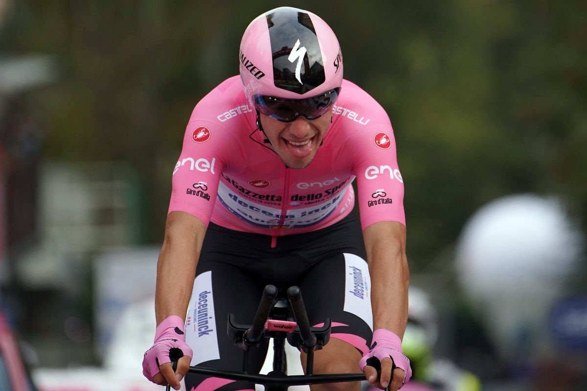 ジロ・デ・イタリア2020第14ステージが17日、コネリアーノからヴァルドッビアーデネまでの34.1kmでの個人タイムトライアル形式で行われ、個人TT世界チャンピオンで今大会の第1ステージの個人TTも制しているフィリッポ・ガンナ(イネオス・グレナディアス)が2位に26秒差を付けて圧勝した。個人総合トップのホアン・アルメイダ(ドゥクーニンク・クイックステップ)は6位と好走し、個人総合争いのリードを拡大した。