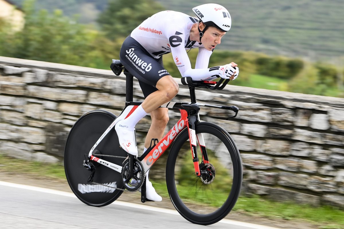 レースは個人総合の最下位の選手からスタート。出走選手の中には歴代のTT世界チャンピオンや各国の現TTナショナルチャンピオンも。チェコのTTナショナルチャンピオン、ヨセフ・チェルニー(CCCチーム)は43分56秒を記録。暫定1位のホットシートを獲得した。