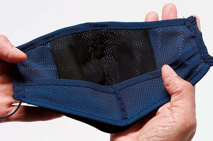前号で「モチピンク」がマスクをしたままボトルの水が飲める、パンダーニのウォーターマスクを紹介していた。それを見て「もっと大きな開口部だったら呼吸がラクなんじゃない?」と思っていたら、パールイズミがやってくれた! 本体とあごにかける部分が分かれていて、口を開けるとそのままガバッとワイドオープン。また、口を開けなくても、すきまから空気が入ってくるので、鼻呼吸も非常にラクだ。素材は同社の夏用マスクと同じもので、少し硬めの張りのある素材。これにより呼吸時に生地が口や鼻に張り付くことを防いでいる。