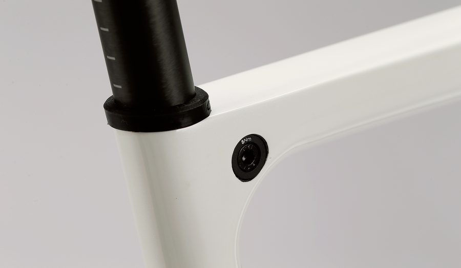 振動吸収性を高めるためにエアロ効果に優れたD型ではなく、丸形の27.2mm径のシートポストを採用。クランプはフレームと一体化して空気抵抗を軽減する。
