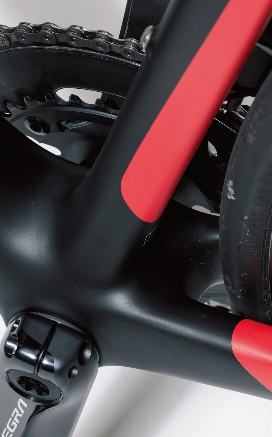 ほどよいボリュームをもったBB周辺。シマノのプレスフィットBBを採用している。