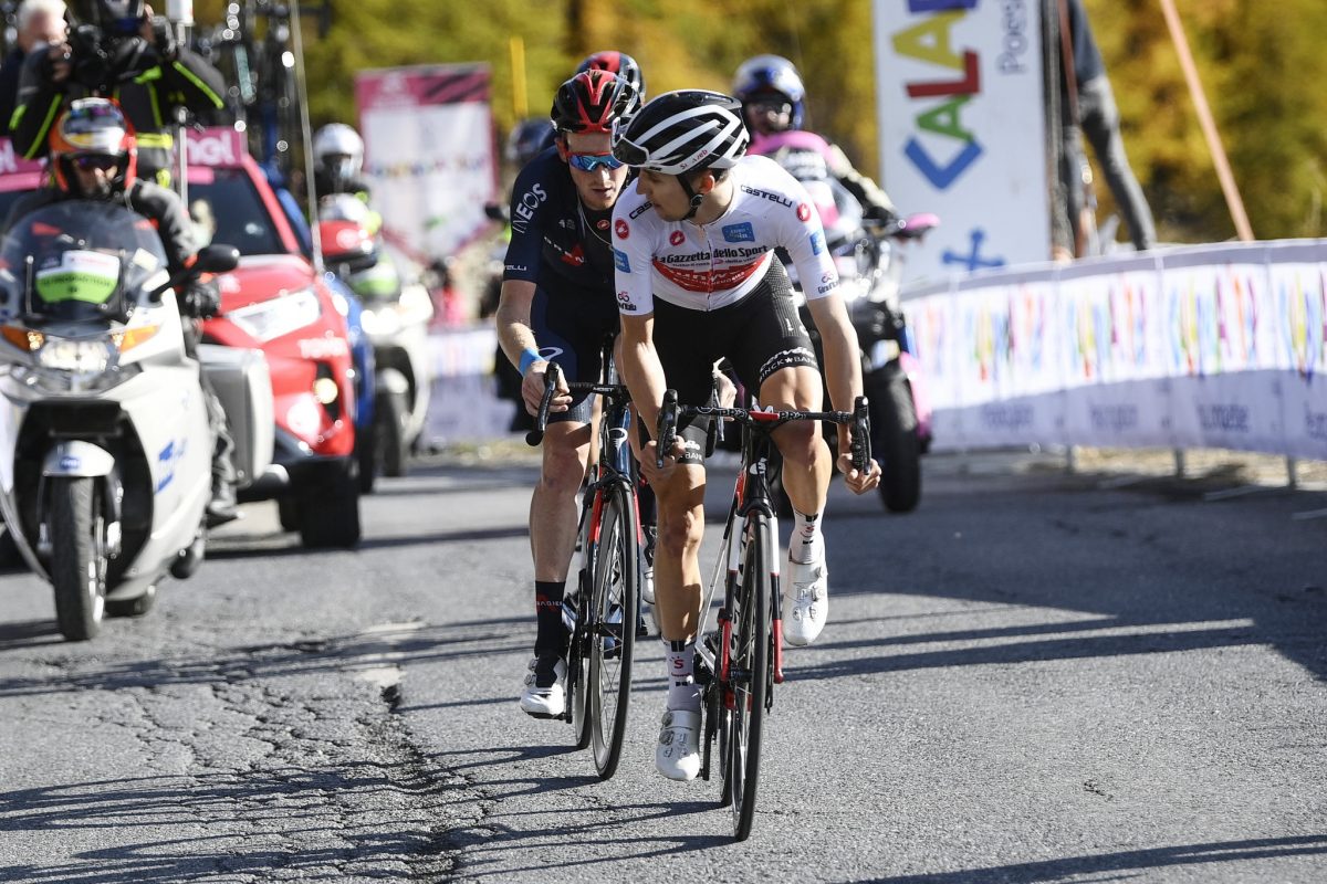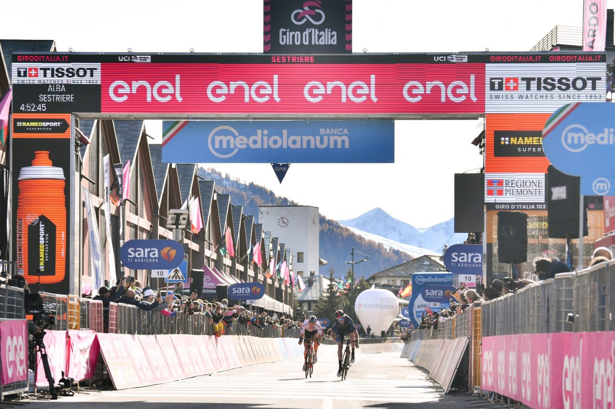 メイン集団ではイネオス・グレナディアスが集団をコントロールしていたが、2回目のセストリエーレへの上りでローハン・デニス(イネオス・グレナディアス)がペースアップ。この動きでメイン集団が崩壊。ゲイガンハートとヒンドレーはペースアップに対応できたものの、マリアローザを着るケルデルマンやヤコブ・フルサン(アスタナ)、ヴィンチェンツォ・ニバリ(トレック・セガフレード)らが遅れ始め、ここで個人総合上位陣の明暗が分かれた。