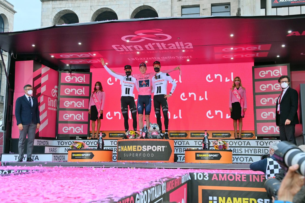 優勝したゲイガンハートは「今年は世界中の誰にとっても不思議な年でした。私は去年から家に帰れていません。ようやく私は兄弟に会うことを楽しみにしています。チームバブルから離れるのが不思議な感じがします。ジロ・デ・イタリアの勝者としてこのポジションに立てたことは素晴らしいことです。ジェイとケンダーマンも表彰台を獲得しました。おめでとうございます。素晴らしい戦いでした。ミラノに着くまでは、まさか自分がジロ・デ・イタリアに勝つとは思っていませんでした。それはクレイジーです!」とコメントしているが、コロナウイルスの検査、そして選手の隔離。さらにコロナウイルスによりユンボ・ヴィズマ、ミッチェルトン・スコットというチームごと去るチームが出てしまう、かつて経験したことのないジロ・デ・イタリアとなった。