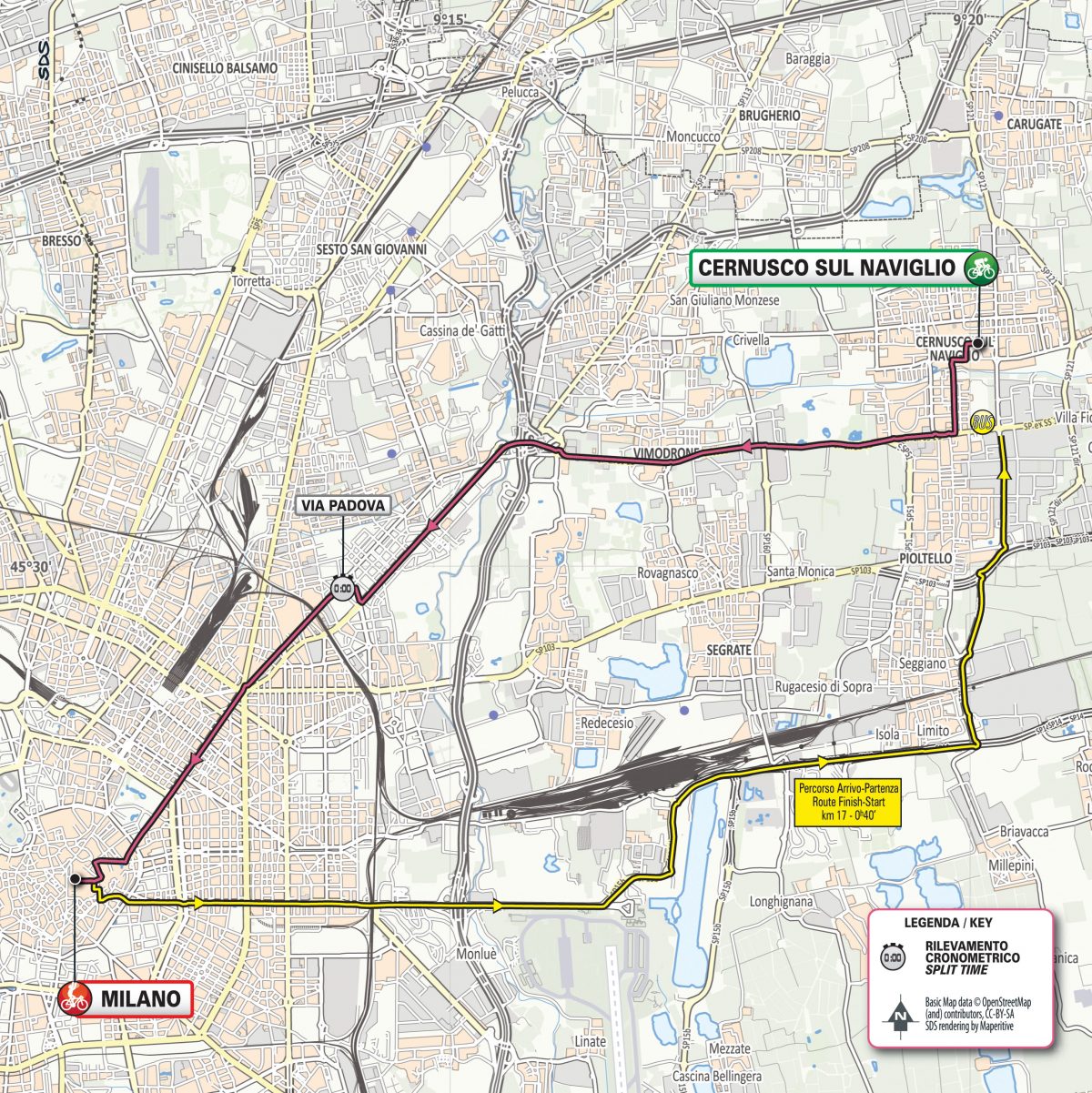 コースはミラノ市内の15.7㎞の平たん路で、最後は大聖堂、ドゥオーモにゴールする。近年ジロ・デ・イタリアの恒例となっているコースとなった。