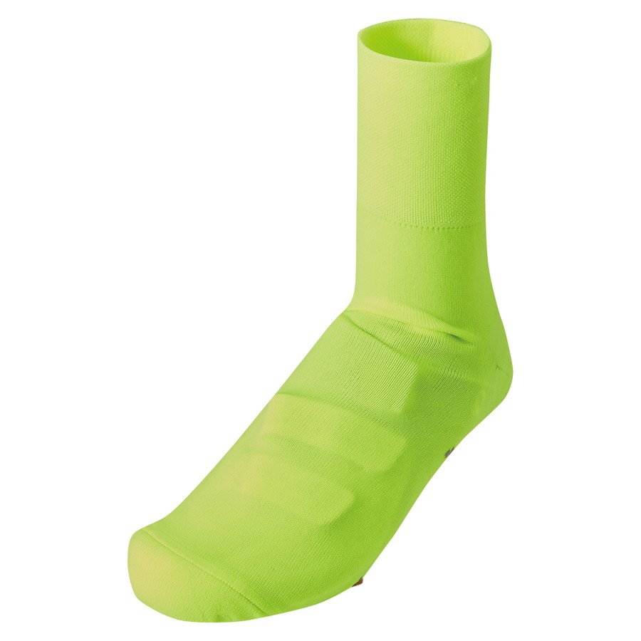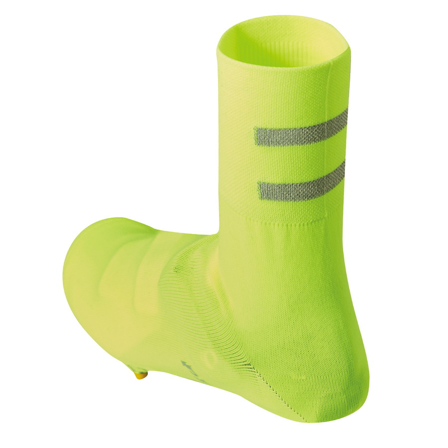 「ニット シューズカバー」は、密に編んだニット素材の優れた伸縮性に、適度な防風性と保温性を備え、コーディネートのアクセントとしても活用できる 10°C対応のニットシューズカバーです。足首後部の再帰反射が夜間の視認性も確保します。ご自身のクリート位置にあわせて、足裏の目盛に対して垂直に切り込みを入れて使用します。