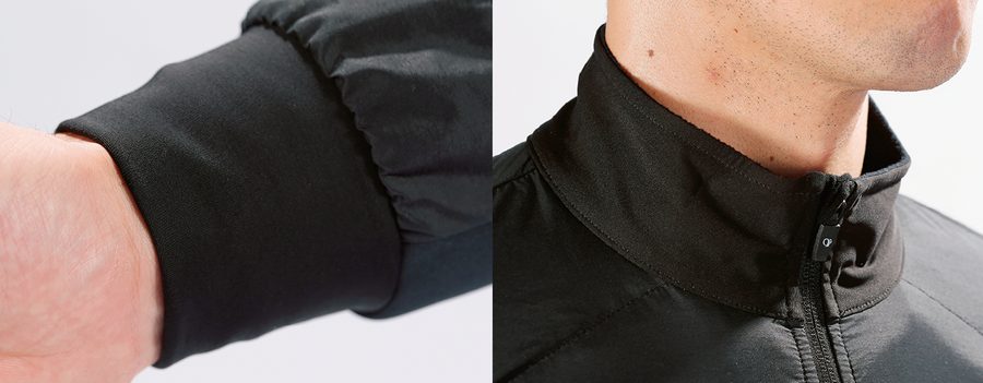 袖口は2ウェイカフ仕様で、冷気の侵入を防ぐ。グローブとの併用も考慮される。襟元とともに柔らかなフィット感が特徴。
