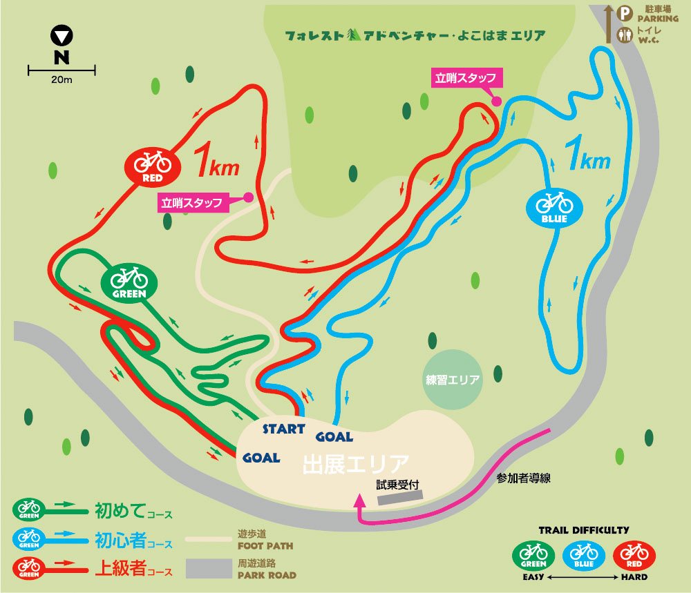 会場は、 「トレイルアドベンチャー」エリア内でこの春オープンする、 レベルに合わせて3タイプのコースにチャレンジできるフォレストアドベンチャーのMTBコース。 参加者は試してみたいコースを自由に選んで走ることができます。