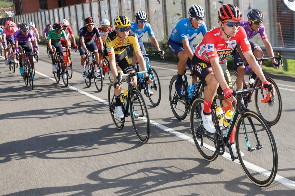 最初の1級山岳を下ると、ユンボ・ヴィズマとイネオス・グレナディアスが牽引するメイン集団と逃げグループとの差は1分40秒ほどに拡大。2つめの1級山岳コベルトリア峠にさしかかると、マルク・ソレル(モビスター)がメイン集団を飛び出し、先頭集団に合流した。1級山岳コベルトリア峠のKOMは逃げグループのマルタンが先頭で通過した。
