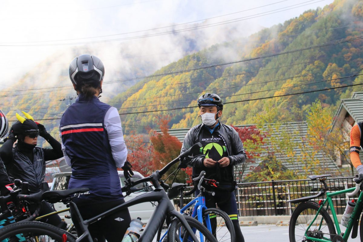 じつは3日目は冷たい雨、さらにコースとして想定していた地蔵峠、分杭峠が通行止めのため一部がクルマでの移動となった。ただ、4日目ともなると毎日100㎞超、獲得標高2000m超のルートに参加者もちょっとお疲れの様子。