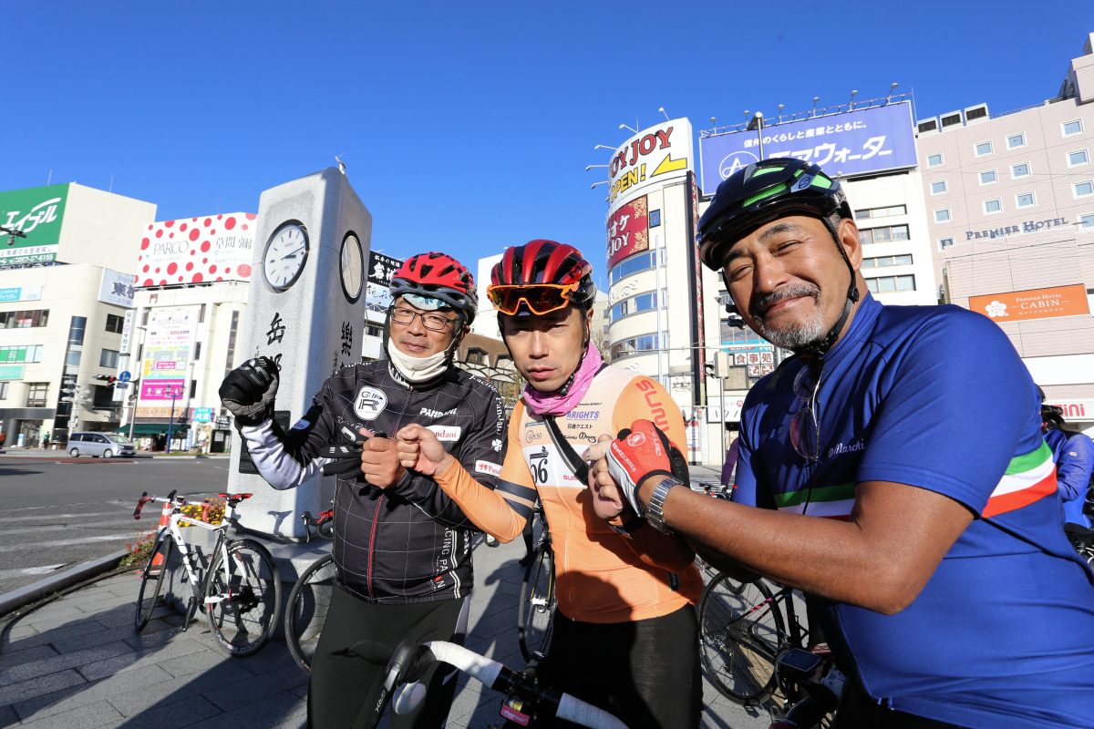 ようやく松本市内に戻ってくると、参加者も元気を取り戻してきた。「最後はゴールスプリントしないとね」と冗談を言って盛り上がるのは、今回800㎞超のコースを走り切った小肥寛和さんと二木正幸さん。じつは2人、1回目のツアーに参加して、その楽しさにはまり2回目にも参加。そこまでにダイエットして調整してきたという。それだけに完走の喜びは大きい。編集部山口も最後の一日だけのツアー参加だったが、和気あいあいと会話を楽しみ、基本は助け合いながらも、時には峠で脚を見せ合いながら走るツアーの楽しさを味わった。