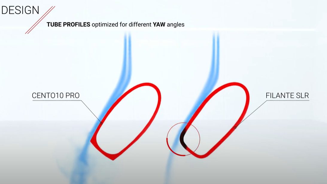 下の図にあるようにチェント10プロではテール側にエッジを残したデザインになっていたが、フィランテSLRではエッジを丸くすることで、横風が吹いたときに乱流が起きにくいデザインになっている。