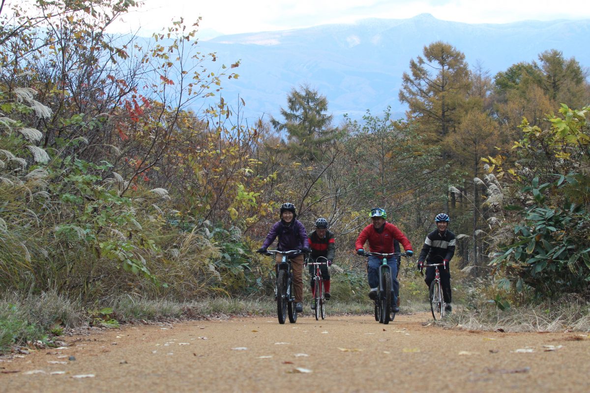 ゲレンデやシングルトラックだけでなく、エントリー層にはハイキング気分で自転車を楽しめる