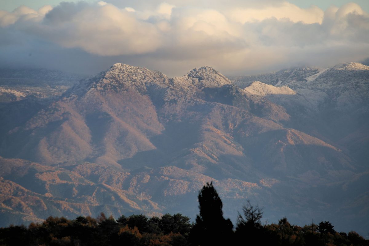 ゲレンデの作業道を上っていくと、志賀高原などの山々が見渡せる