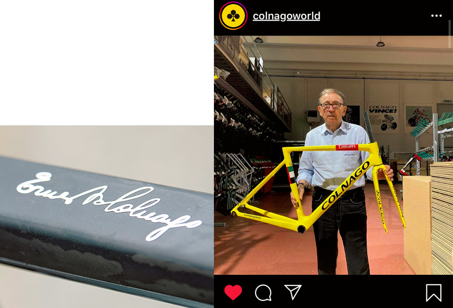 ツール史に残る逆転劇。8月22日、マイヨジョーヌでパリ・シャンゼリゼを駆け抜けたタデイ・ポガチャル(UAEチームエミレーツ)。若干21歳の若きスターがつかんだツール制覇の夢。この夢を誰よりも待ち焦がれていた人物こそ、エルネスト・コルナゴ(88歳)であろう。急遽、黄色に仕立てられたV3-RSはエルネストの手から渡り、シャンゼリゼで輝きを放った。