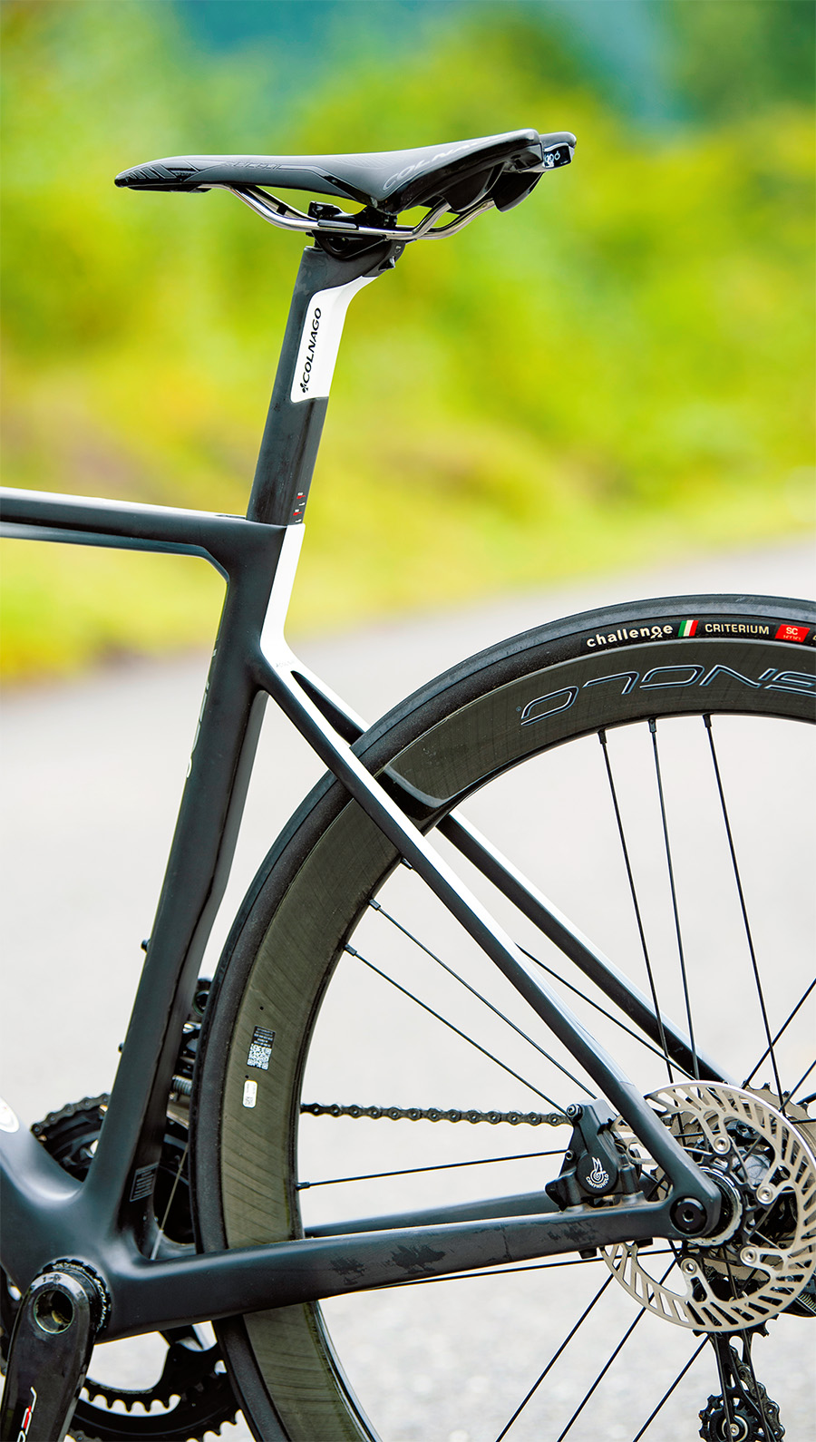 正直なところ、競合モデルと比較してV3-RSは軽さをうたうほど軽量ではない。しかし、じつに軽く進む。そもそもV3-RSはコルナゴ史上最軽量モデルではあるが、主眼は空力性能と剛性の追求に置かれており、重量はあくまで結果だ。走らせてほんとうに速さを感じられるバイク。それこそコルナゴが目指したバイク作りであることを実感するのだった。