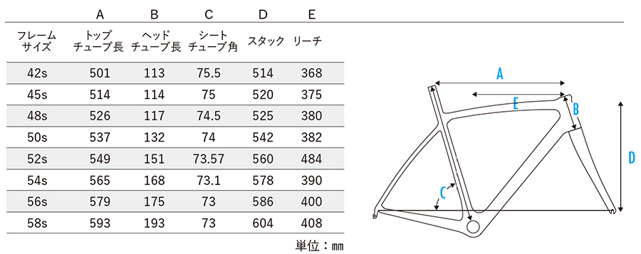 昨今のトレンドであるシートステー位置を下げたリアバック設計は、フレーム剛性を高めつつ空力性能も向上させる理想形とされる。各チューブともに直線基調で反応性を高める。リアホイールのラインに沿ったシートチューブ形状など、エアロダイナミクスを意識したフレーム形状でもある