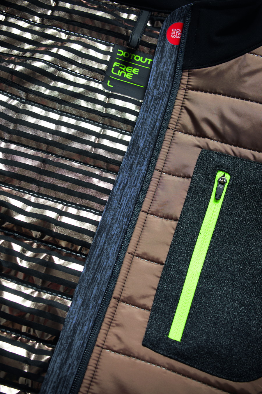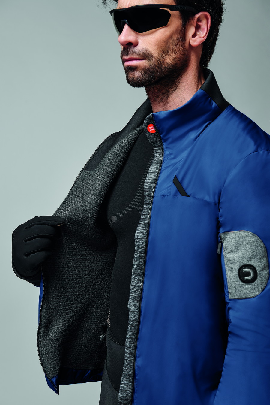 DOT THERMO ACTIVETECHNOLOGY は、完全な断熱を維持し、熱損失を回避するために開発されました。 生地は、野外活動中に体から必要な量だけ熱を送り返す反射バリアのように動作します。この特定の技術を使用して作られたジャケットは、水分を保持せず、汗を簡単に蒸発させることができるため、最適な体温を維持します。