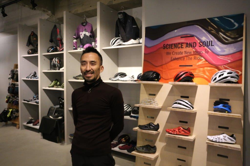 アメリカでヘルメットブランドとしてスタートした、GIRO(ジロ)。ここGIRO STUDIO TOKYOにはスペシャリストとして内田雅樹さんがいる。ヘルメット、シューズを中心に、ジロのアイテムが揃う。