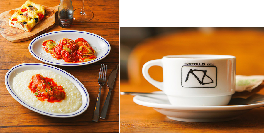 右/イタリアらしく、コーヒーはエスプレッソ。小ぶりのカップにフレームのシルエットが