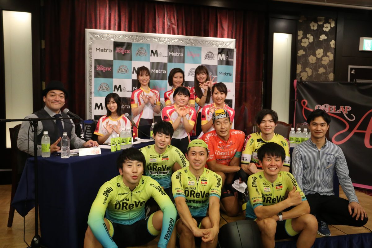 第2レースとなったMOVING ALL AROUNDには那須ブラ―ゼンGMでイケメン担当の若杉厚仁さんが現役復帰、さいたまディレーブの藤田涼平さん、さらにONELAPエンジェルのMIHOさん、MOOMINGさんが会場を盛り上げた。藤田選手がプロの走りで先頭でフィニッシュ、いっぽうONELAPエンジェルの2人も本気の走りで、ゴール後に脚の痙攣が止まらないほどの熱い走りを披露した。また、レース中にはたびたび佐野選手がトークをさく裂し、本気だかボケだかわからないしゃべりで、MC関原さんと大貫彩香さんをタジタジにさせる一幕をみせた。