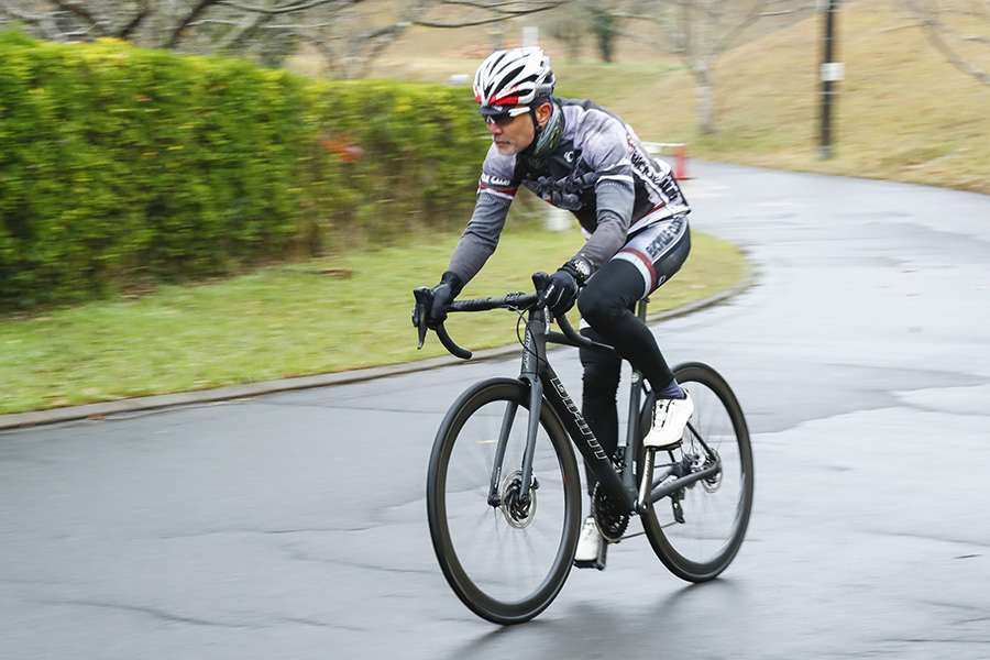 春に行われたメディア向け試乗会以来、ひさしぶりに乗った。やっぱりすげえなあ、というのが正直な感想だ。持っても走ってもその軽さは際立っている。その軽さと剛性バランスのよさがもたらす走行感は異次元の感覚。軽量バイクらしいパリパリした走り味は少し感じるが、慣れてしまえばかえってトップレーシングバイクに乗っている満足感に変わるもの。ドライブトレインとブレーキをのぞくすべてが自社ブランドで統一され、トータルインテグレーションも高いレベル。