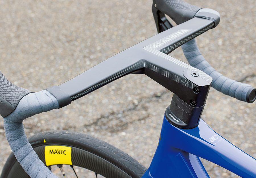 ハンドルステム一体成型のデダのアラネラが付属するパッケージも用意。ケーブルは完全内装され空気抵抗の軽減にも貢献する。