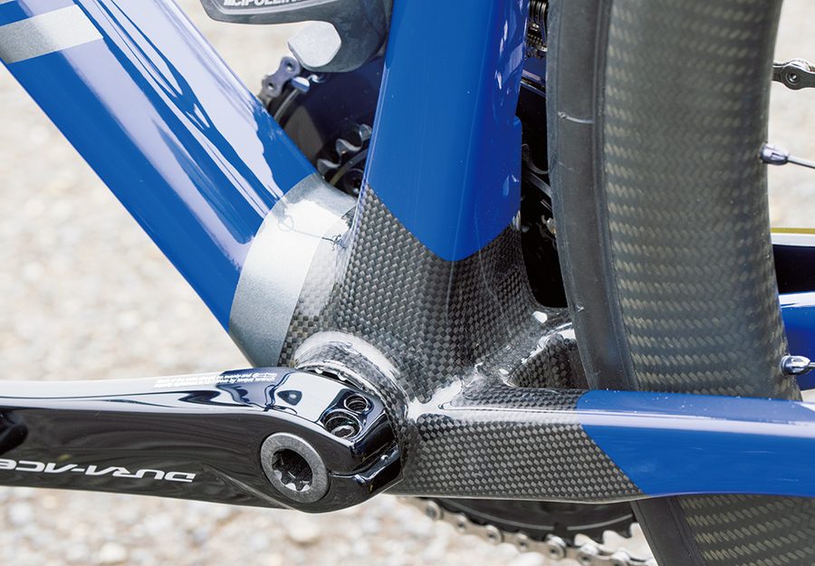 BBまわりはボリュームを確保。チポッリーニらしい高剛性でペダリング効率を最適化している。