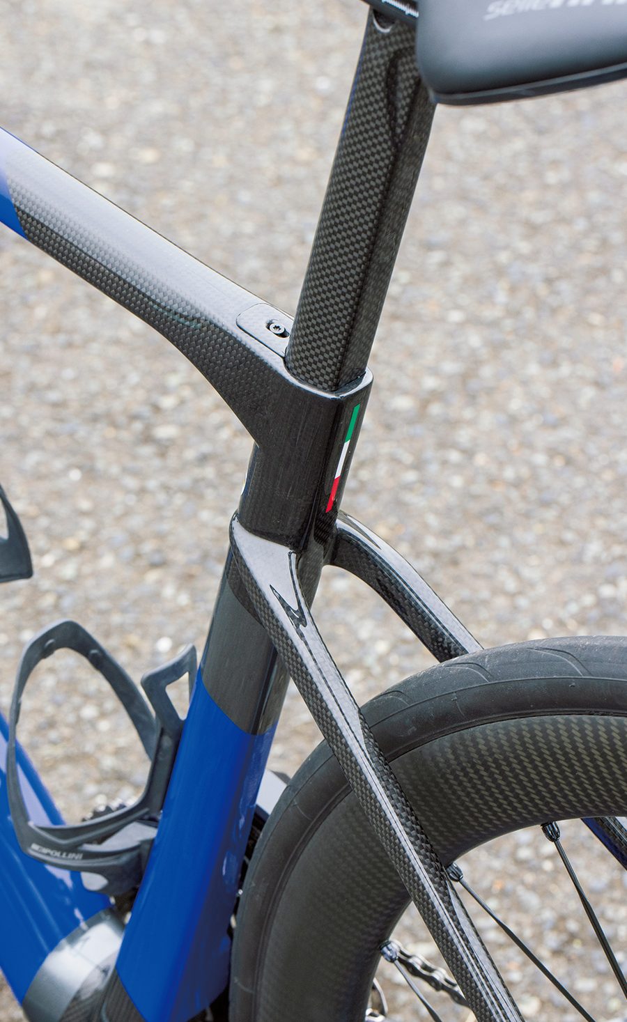 フレームの成型方法は継ぎ目のないフルカーボンモノコックであるTCMテクノロジーを採用、イタリアの職人が手作業で作り上げることで美しさとともにパフォーマンスの向上が図られている。