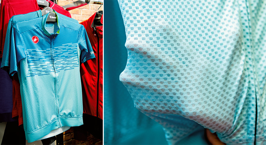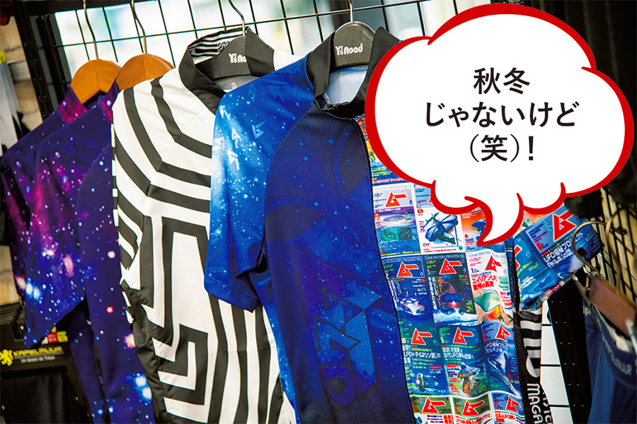 最軽量、インドアトレーニング専用ジャージ。滝のように流れる汗をため込まないように吸汗速乾に特化。ビブショーツもあり、昨年よりも需要が急増。暑い日の屋外にも適している