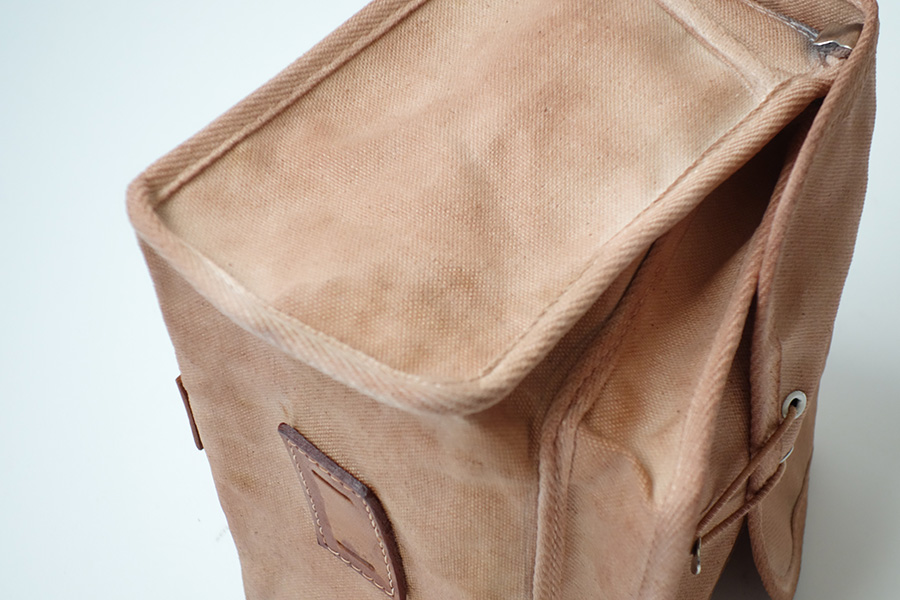 犬印の自転車バッグは、いまも生産されているが、これは現在の会社に代わる前の時代の犬印だ。未使用とはいえ、40年以上も経過しているから、とうぜんカビなどのシミも生じるわけ。