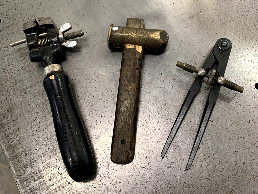 自身の道具は工房では別の場所に保管し、ほかのスタッフは使えないようにしている。