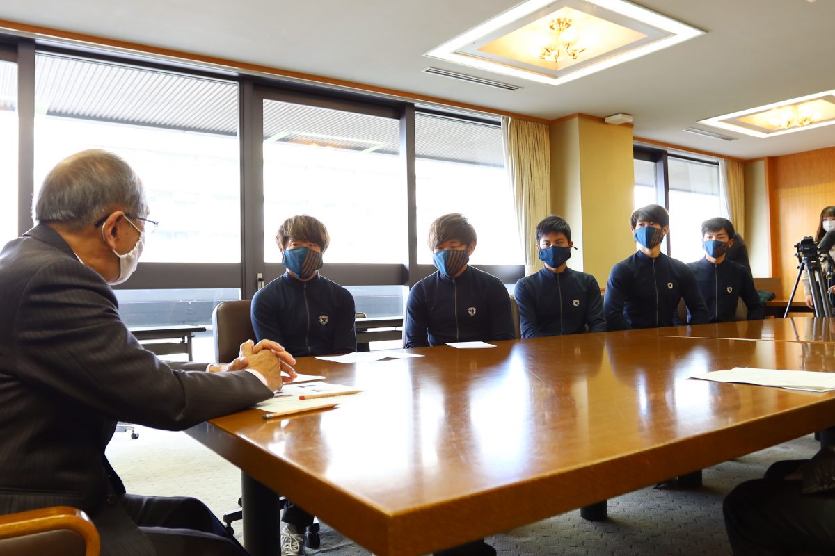以上の報告を受けた広瀬知事からは、 「大分県は自転車の歴史が根付いていると思いますので、 地域発展を目指して頑張ってほしい。 」と、 選手一同に向けてメッセージをいただきました。