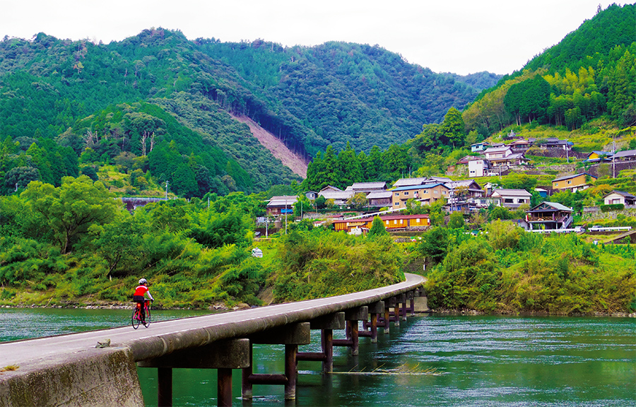 この十和から西土佐あたりの四万十川の眺めはとくに美しく、たっぷり堪能したい。川とともに下り、木々のすき間に川を眺める細い道や集落、田園風景と異なる趣の道を抜けながら、走る。