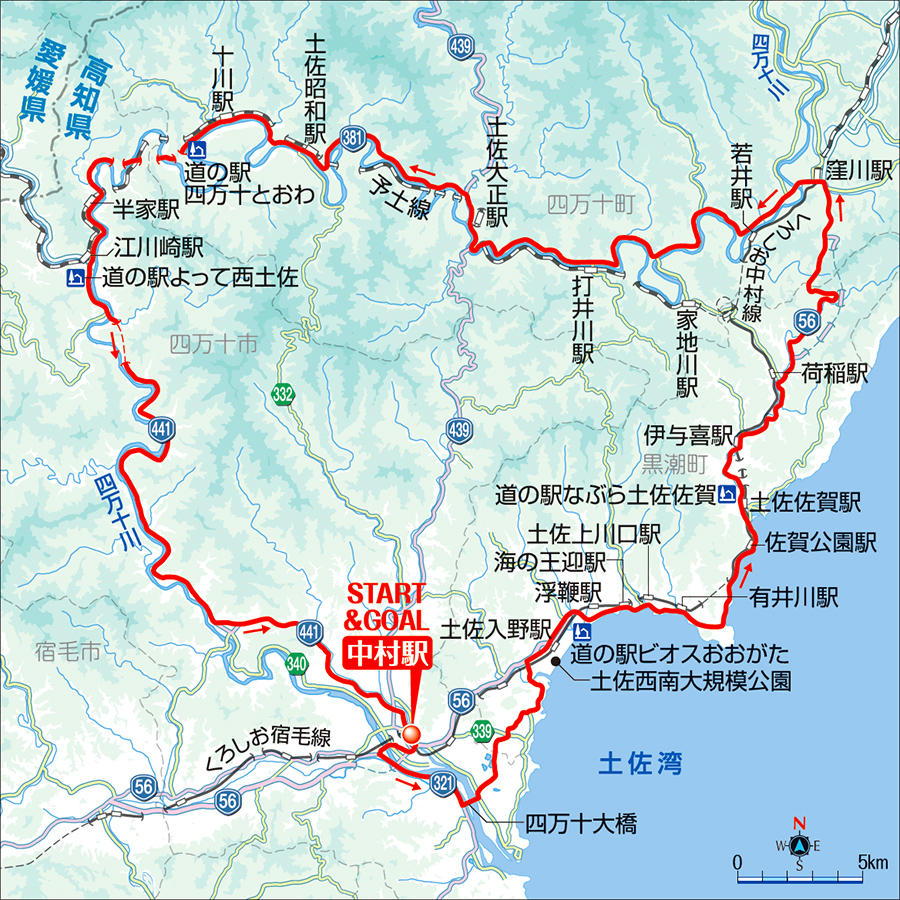 (中村駅〜黒潮町〜四万十町〜西土佐村〜中村駅)