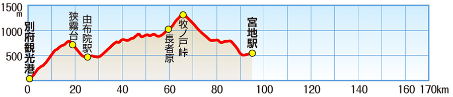 けっこうな上り下りがあるのでマイペースに走る。途中のくじゅうあたりで宿泊して2日に分けて走ってもいい。走れなくなったら九州横断バスに乗ることも可能。脚力が残っていたら途中から阿蘇ミルクロードを走るといい