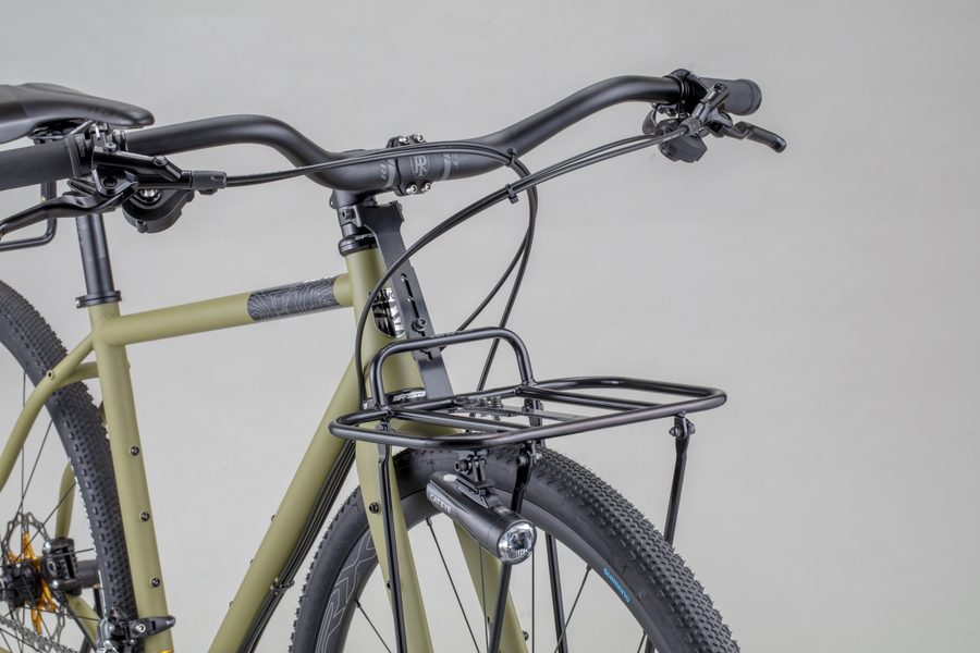 あらゆる用途で使いやすい軽量フロントラック。ブラケットを取り付けることで、ライトやアクションカメラの取り付けも可能。