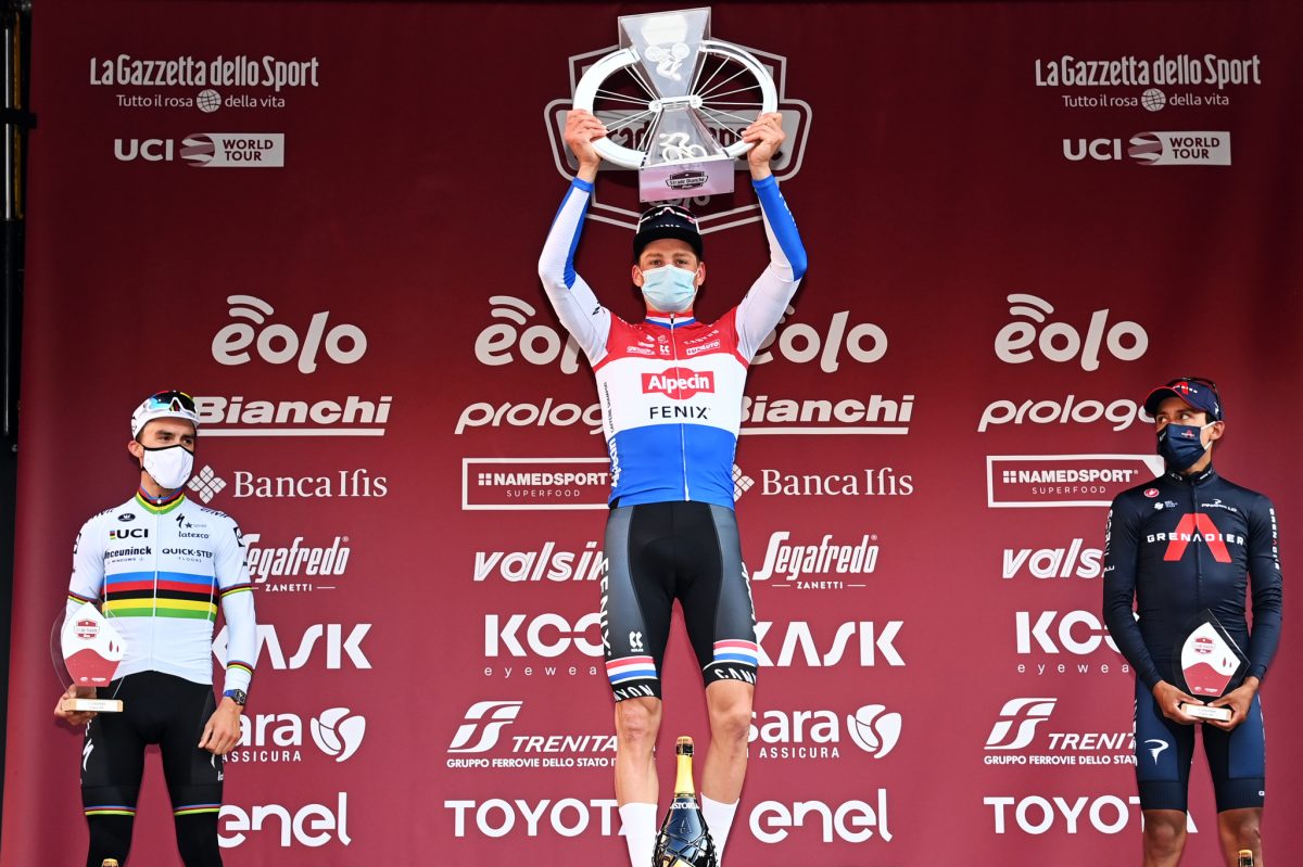3月6日、イタリアトスカーナ地方、シエナで開催された世界最高峰カテゴリーのロードレース、ワールドツアーレース「ストラーデビアンケ」。通称「白い道」と呼ばれる未舗装路を走る184㎞のコースを走った男子エリートではシクロクロス世界チャンピオンのマチュー・ファンデルプール(アルペシン・フェニックス、オランダ)が世界チャンピオンのジュリアン・アラフィリップ(ドゥクーニンク・クイックステップ、フランス)、そして、2019年のツール・ド・フランスの覇者エガン・ベルナル(イネオス・グレナディアーズ、コロンビア)を抑えて勝利した。