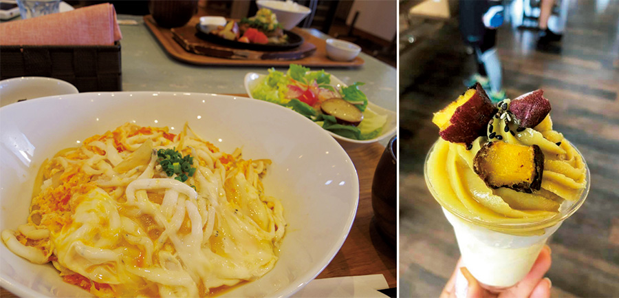 右/「かすみマルシェ」では、土地の産品やジェラート、コーヒーなどを販売している