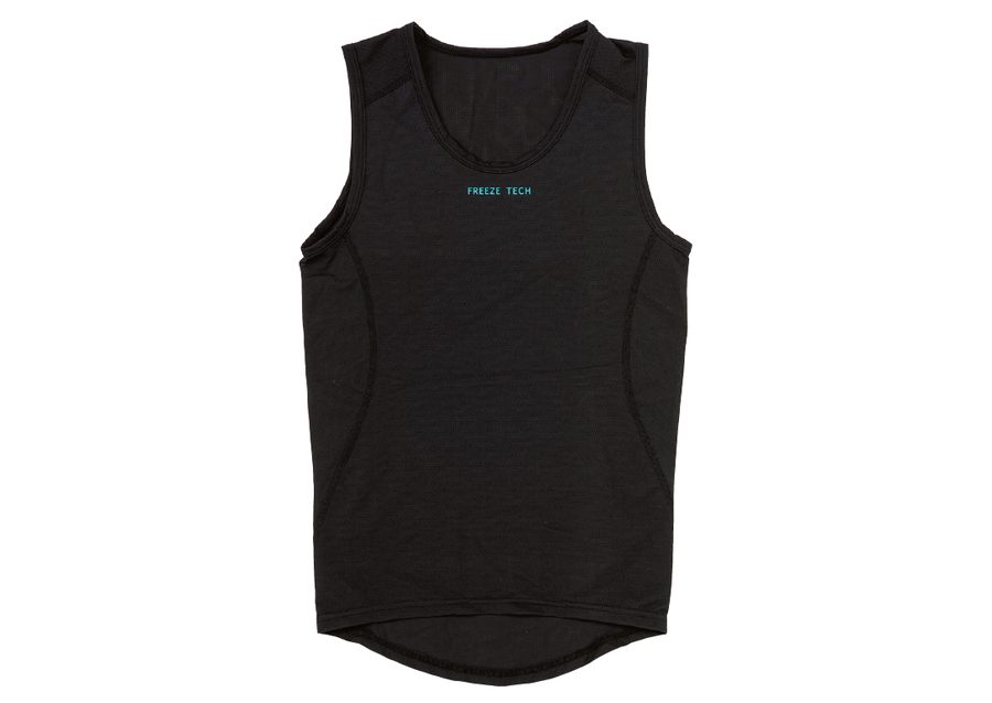 フリーズテック代理店であるフタバ商店オリジナルの、サイクリング用ノースリーブ冷却インナー。高い伸縮性と接触冷感を兼ね備えた薄手の最高級生地を採用し、シルクのような肌触りが特徴。