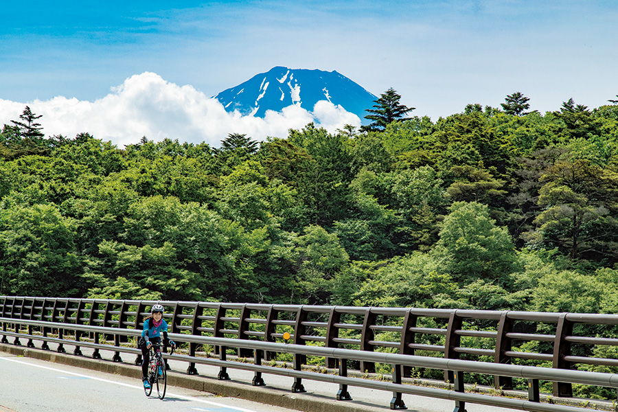 静岡、山梨の2県にまたがって延びる富士山裾野の壮大な周回路を巡るダイナミックコース。走行の達成感自体も大きいが、道中に頭や、時には全身を現す富士山の見え方に一喜一憂することになる。これほど濃厚に富士山を感じ、楽しめるのは、自転車だからこそといえるだろう。