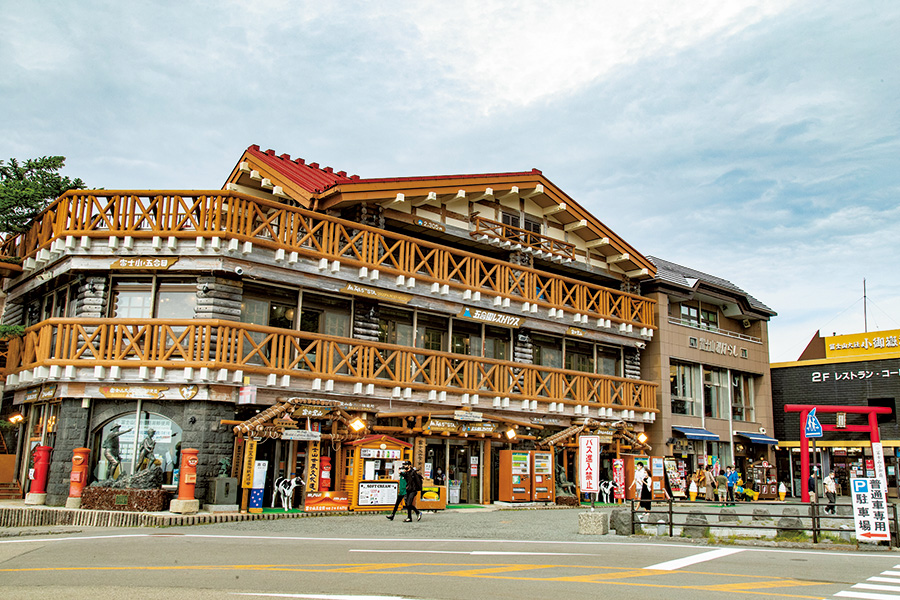 五合目にはレストハウスや、名物「富士山めろんぱん」などを売る売店のほか、神社や郵便局もある